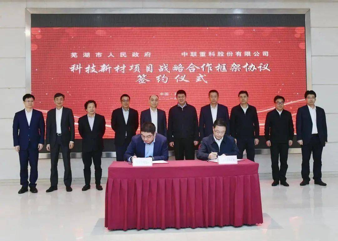 日前,安徽芜湖市政府与中联重科签署科技新材项目战略合作框架协议。芜湖市委书记单向前,市委副书记、市长宁波,中联重科董事长、CEO詹纯新出席仪式并见证签约。