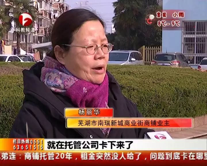 被托管公司卡下来了,这是为什么呢? 杨大姐说,2005年她投资了20多万元,在芜湖市南瑞新城商业街买了三间商铺。